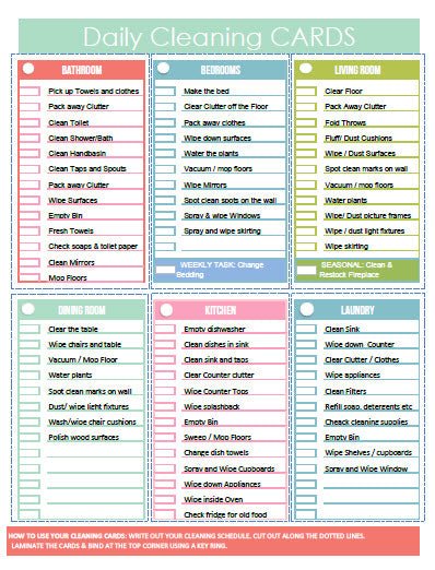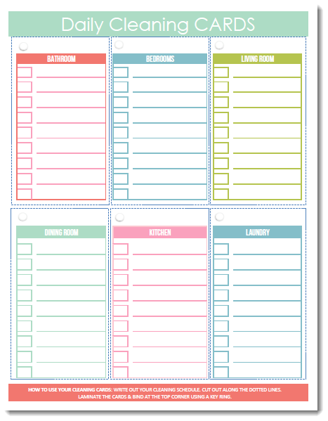 A Collection of Daily Cleaning Cards to help you clean and organise your home is less time from as little as 15 minutes a day.